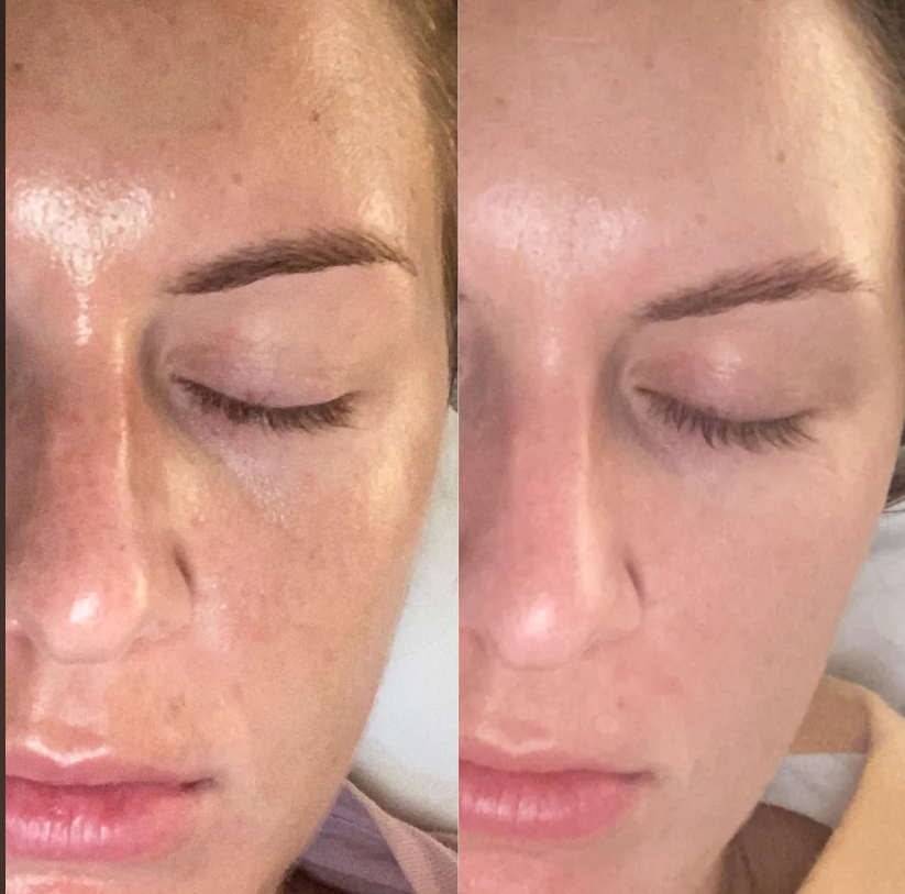 No — it absorbs quickly and leaves a smooth, dewy (not oily) finish.